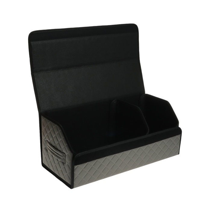 Органайзер кофр в багажник автомобиля Cartage саквояж, экокожа стеганая, 70 см, серый