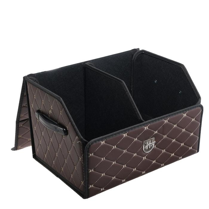 Органайзер кофр в багажник автомобиля HT-097, саквояж 48×32×30 см, коричневый, экокожа