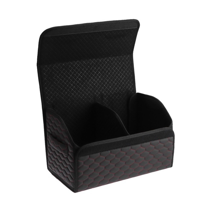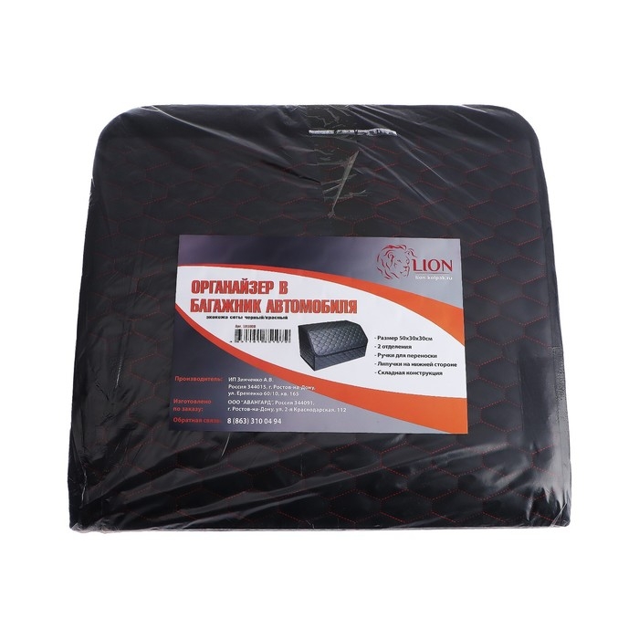 Органайзер кофр в багажник автомобиля LION, экокожа, соты, 50×30×30 см, черно-красный