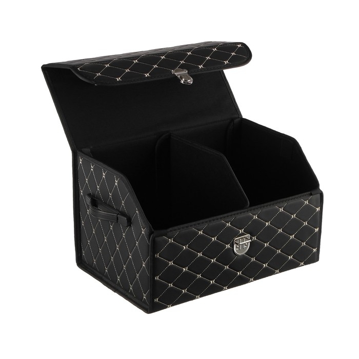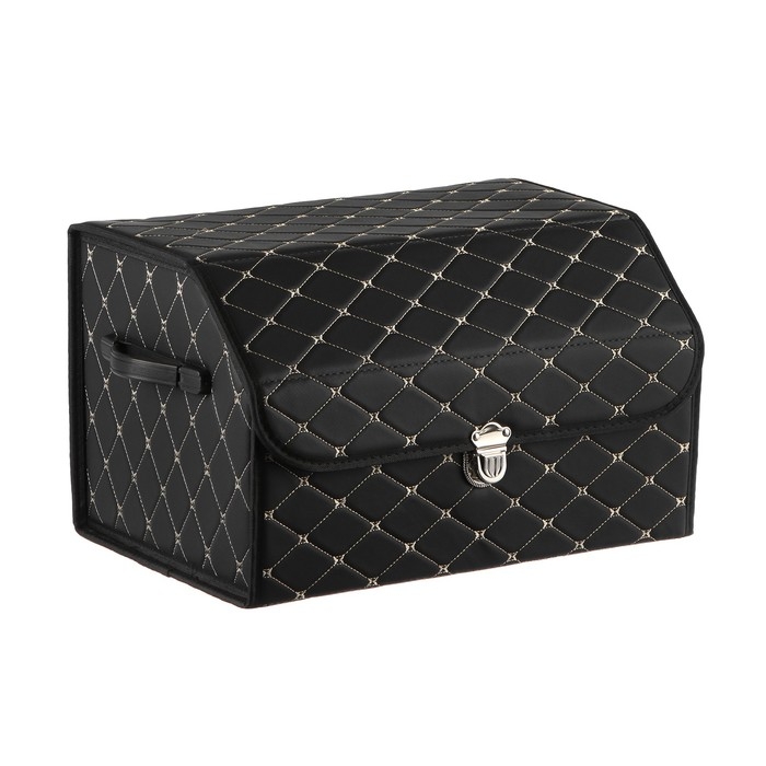 Органайзер кофр в багажник, C2R HT087, 48×30×30 см, экокожа, черный, бежевая строчка