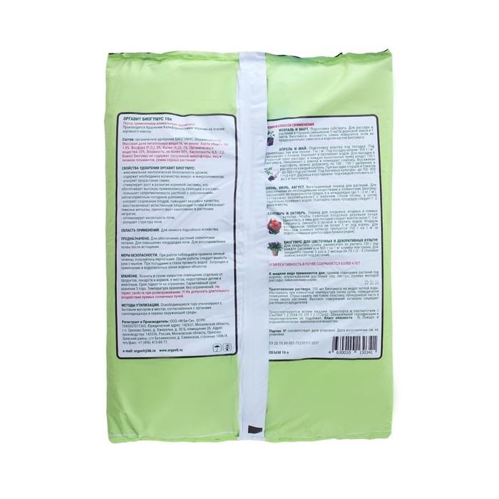 "Оргавит Биогумус" поставляется в удобной упаковке объемом 10 литров, что позволяет использовать его на больших площадях. Удобная упаковка обеспечивает удобство хранения и применения удобрения.