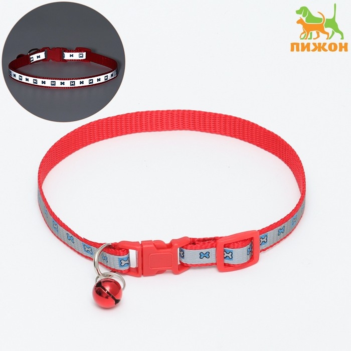 Ошейник "Кость" светоотражающий, 31 х 1 см, красный