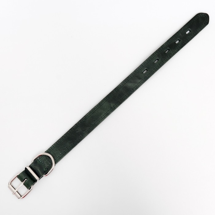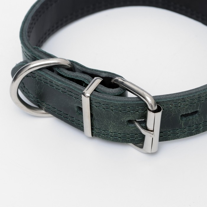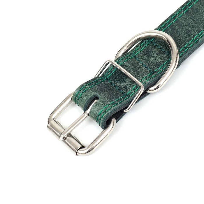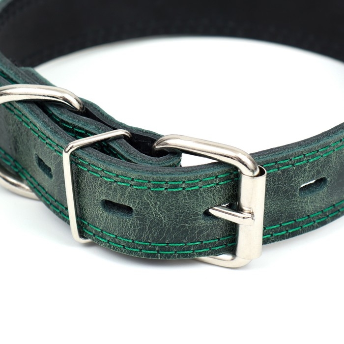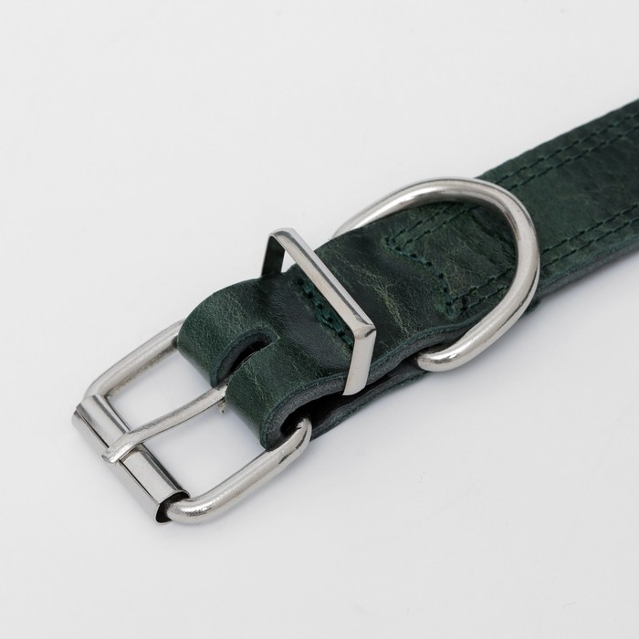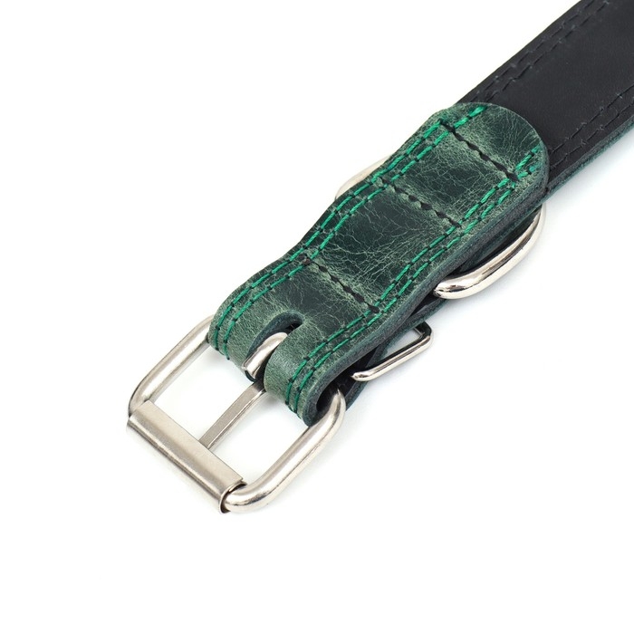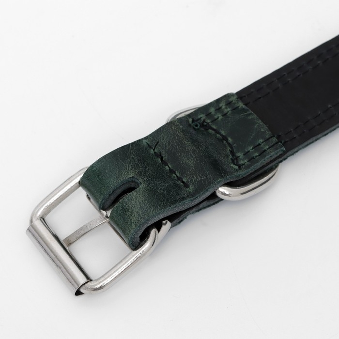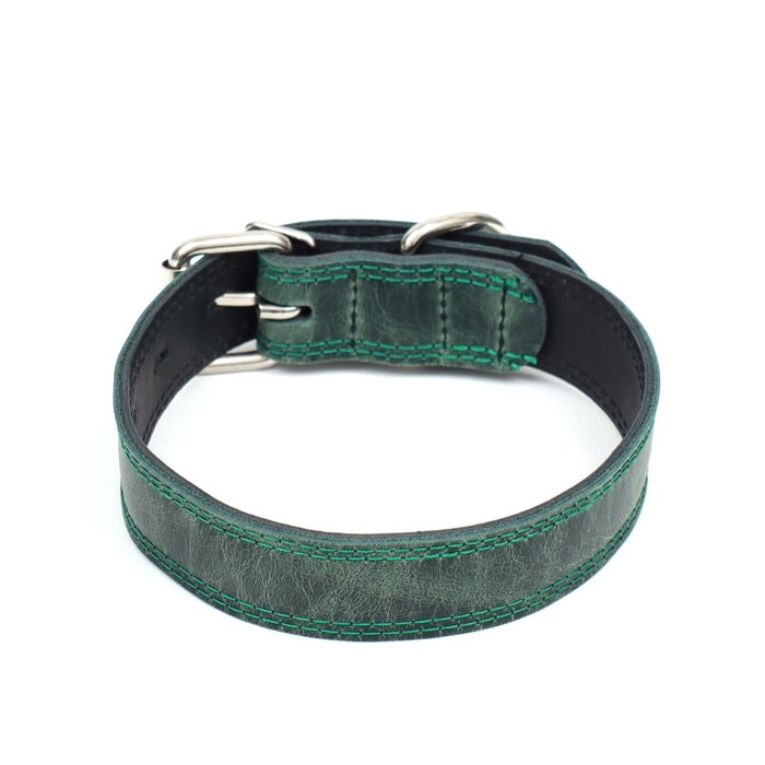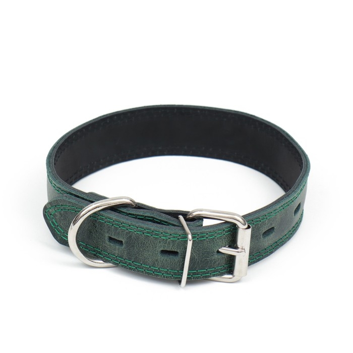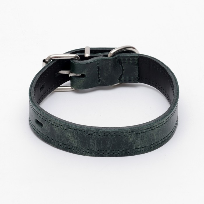 Ошейник кожанный двухслойный 3 см, ОШ 35-47 см, изумрудный