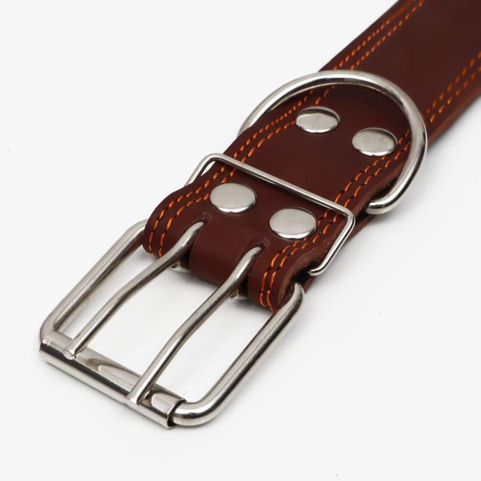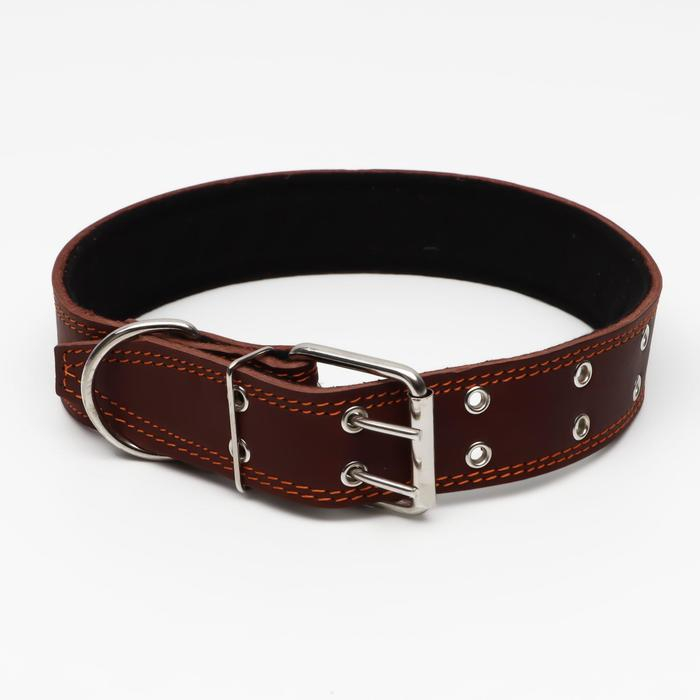 Ошейник кожаный на синтепоне, 82 х 4.5 см, ОШ 50-70 см, коричневый