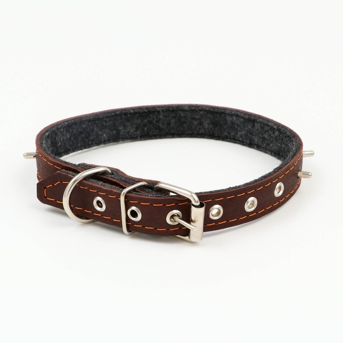 Ошейник кожаный на синтепоне, с шипами, 2 х 40 см, ОШ 25-35 см,тёмно-коричневый