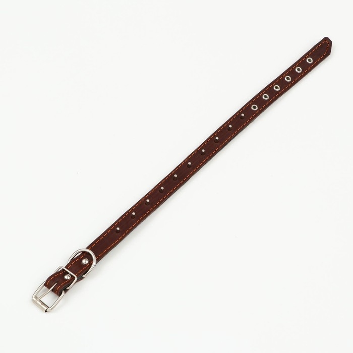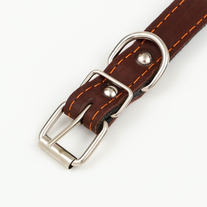 Ошейник кожаный двухслойный, 46 х 2 см, ОШ 25-35 см, коричневый