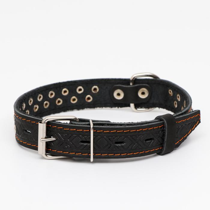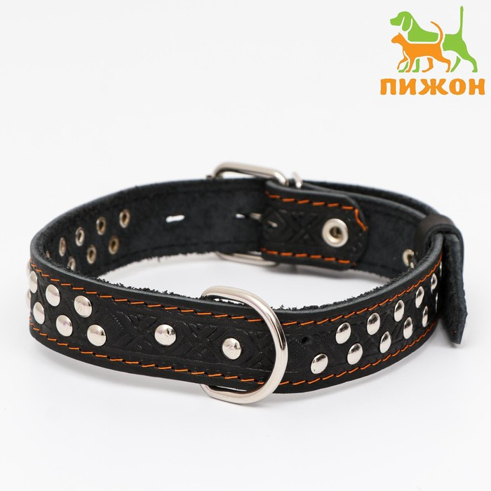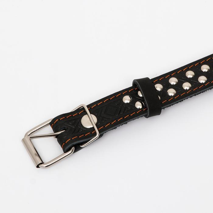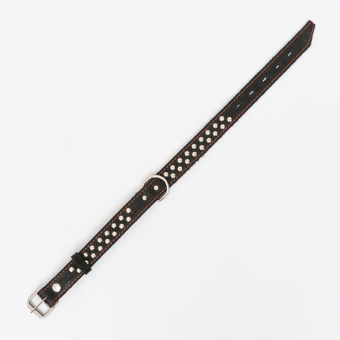 Ошейник кожаный однослойный, клёпаный, 60 х 3 см, ОШ 45-57 см, чёрный