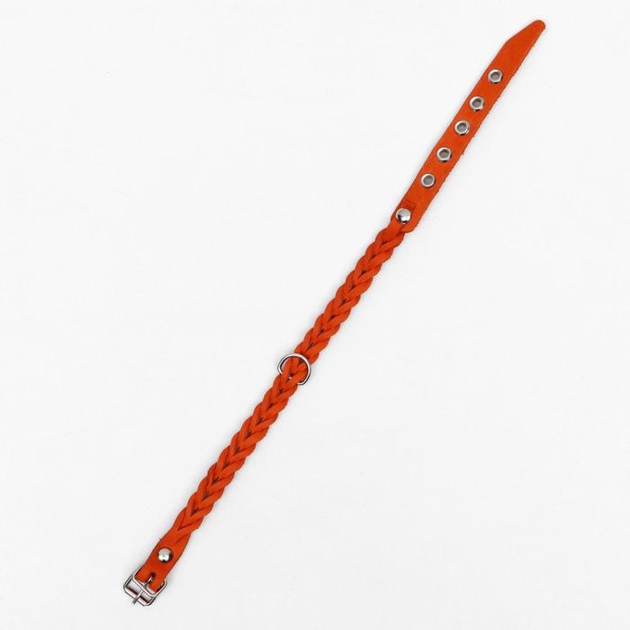 Ошейник кожаный плетеный, 1,2 х 36 см, ОШ 20-30 см, рыжий