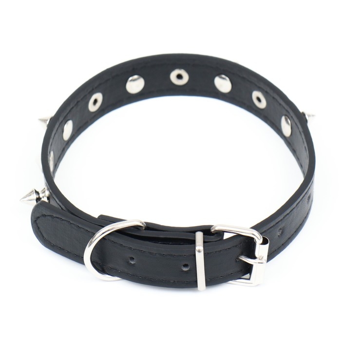 Ошейник "Лион" с шипами 45 х 2 см, ОШ 34-40 см, искусственная кожа, чёрный