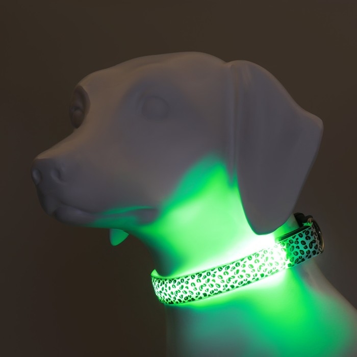 Ошейник с подсветкой "Леопард", 3 режима свечения, зелёный