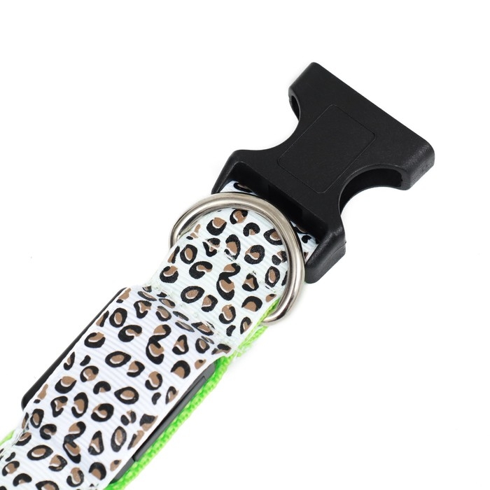 Ошейник с подсветкой Леопард 3 режима свечения, размер L, ОШ 48-60 х 2,5 см зелёный