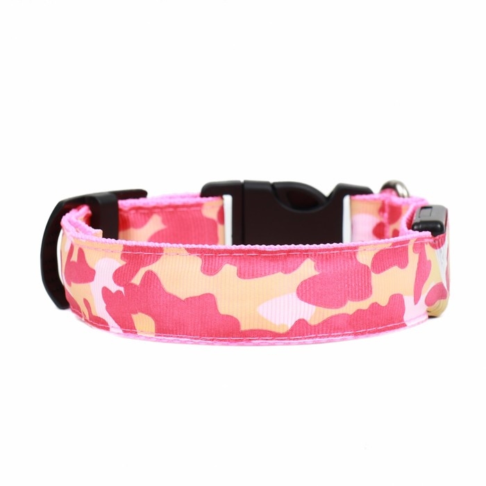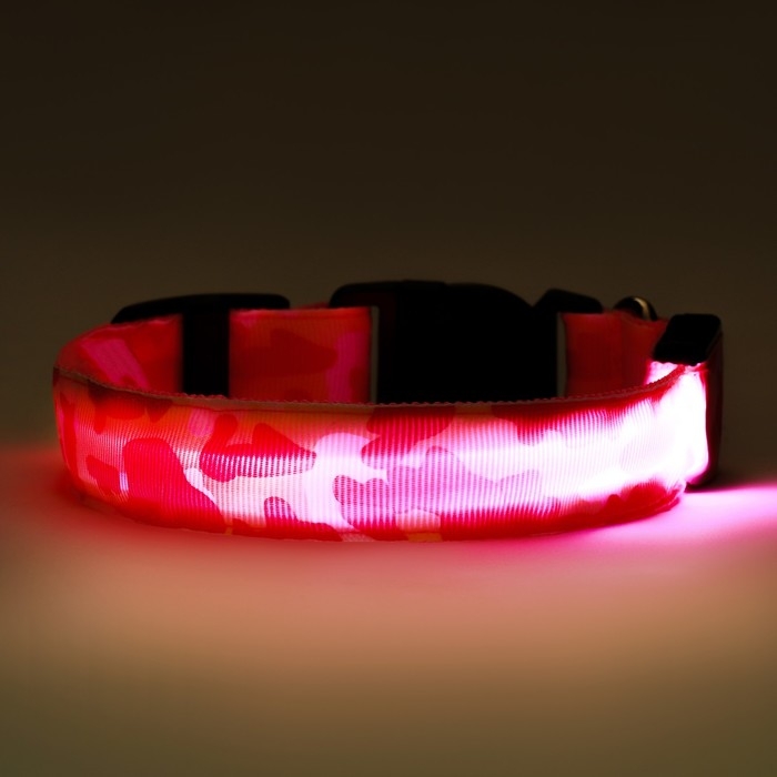 Ошейник с подсветкой "Милитари", 3 режима свечения, розовый