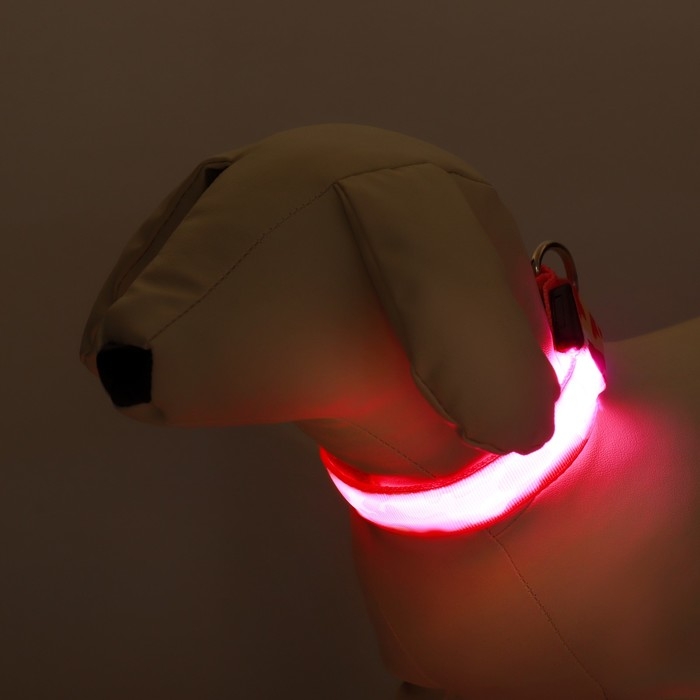 Ошейник с подсветкой размер XL, ОШ 52-60 х 2,5 см, 3 режима свечения красный