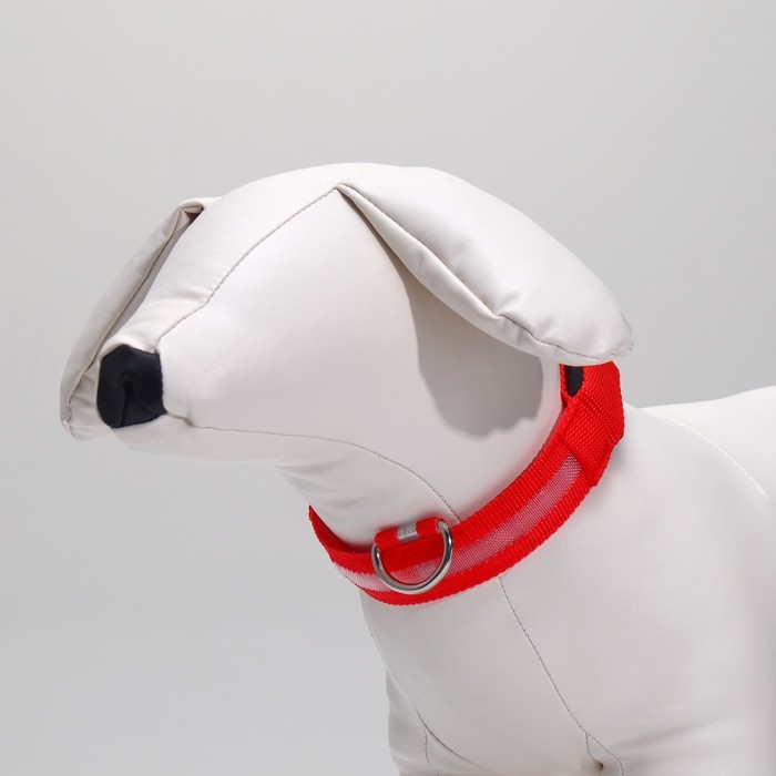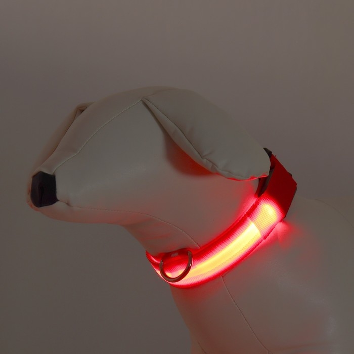 Ошейник с подсветкой размер S, ОШ 35-43 х 2,5 см, 3 режима свечения красный
