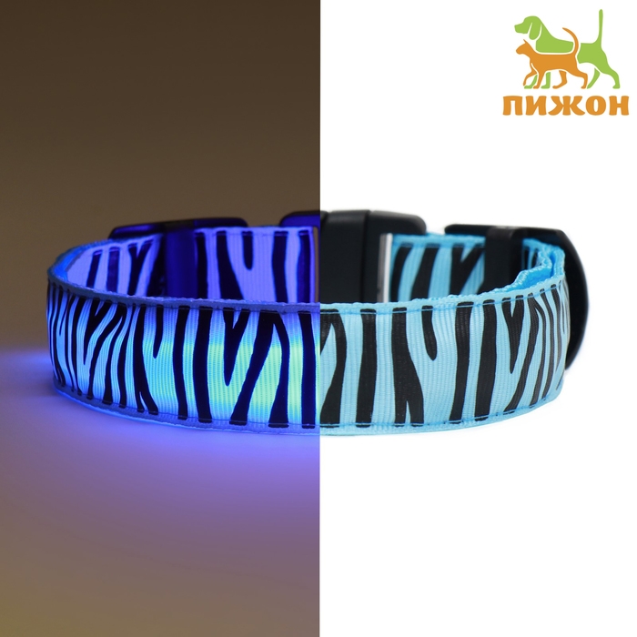 Ошейник с подсветкой Тигр 3 режима свечения размер М, ОШ 32-50 х 2,5 см синий
