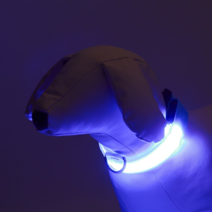 Ошейник с подсветкой, зарядка от USB, размер XS, ОШ 28-38 см, 3 режима, голубой
