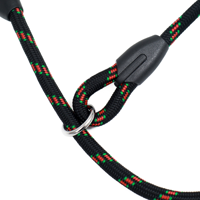 Представляем ошейник-удавку для собак черно-красного цвета, идеально подходящий для комфортных и безопасных прогулок с вашим питомцем. Этот ошейник, выполненный из прочного полиэстера и металла, обеспечивает надежное управление даже самыми активными собаками.