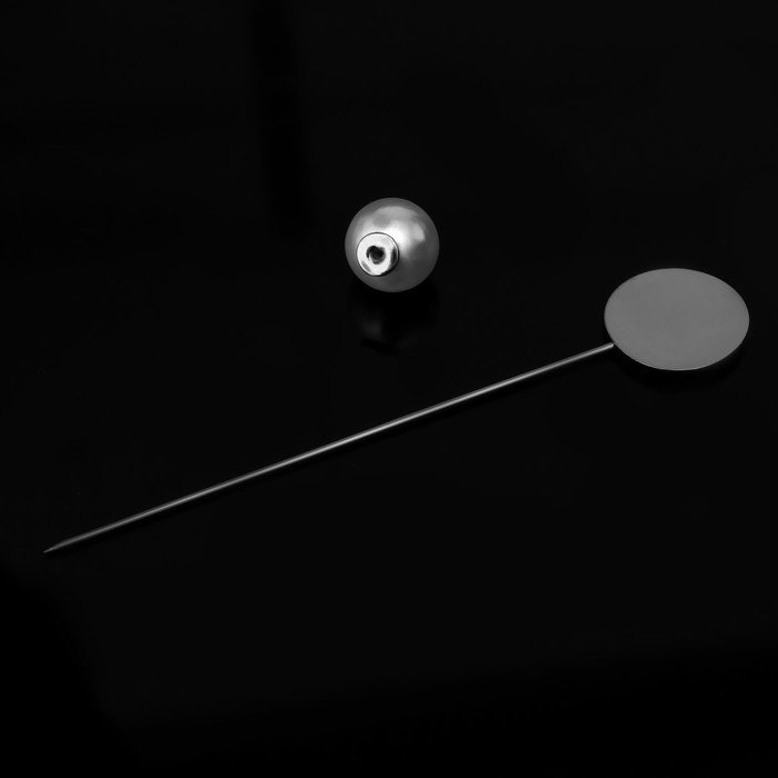 Основа "Брошь-игла" с шариком d=1,2 см (набор 5 шт.), L=5 см, площадка 1,5 см, цвет серебро
