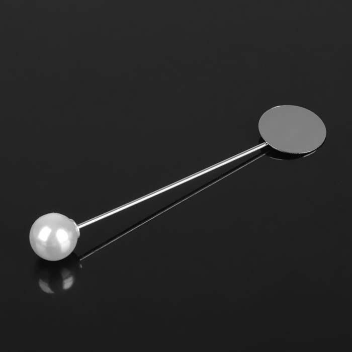 Основа «Брошь-игла» с бусиной d=1см (набор 5шт), L=7,5 см,площадка 1,5см, цвет серебро