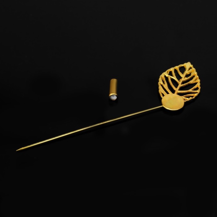 Основа «Брошь-игла» с листом (набор 5 шт.), L=7 см, площадка 0,9 см, цвет золото