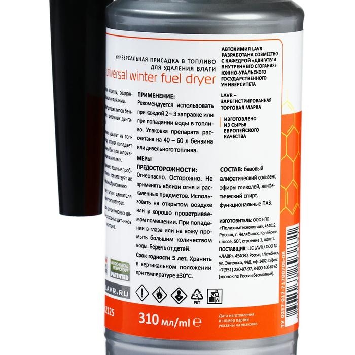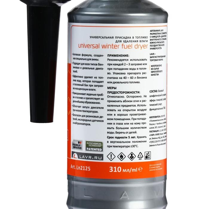 Осушитель топлива Lavr зимний, 310 мл на 40-60л Ln2125
