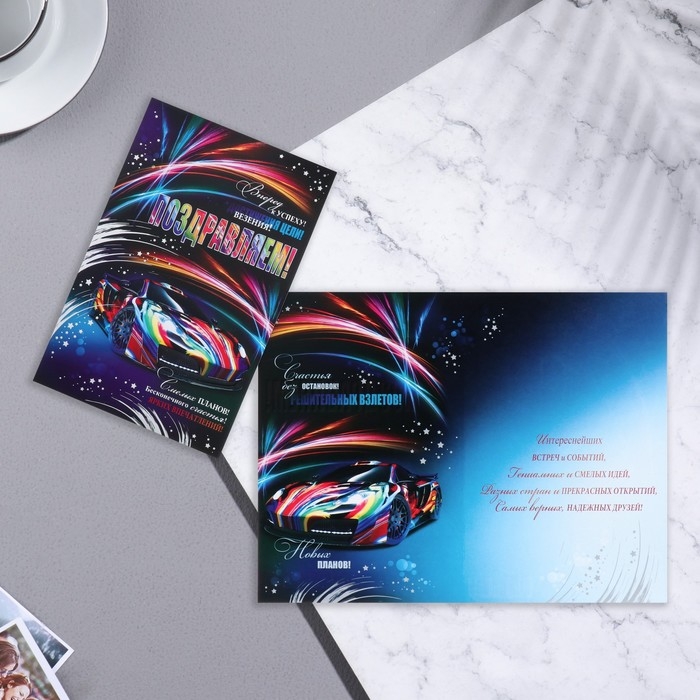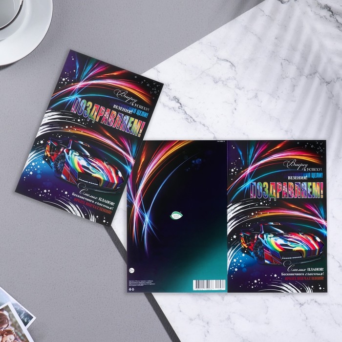 Открытка "Поздравляем!" тиснение, конгрев, автомобиль, 19х29 см