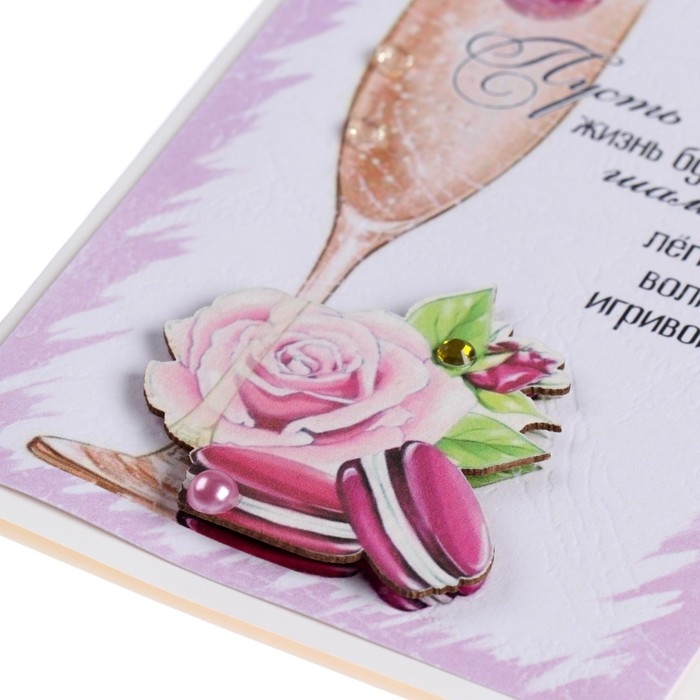 Открытка "Пусть жизнь будет..." ручная работа, бокал, 11,5х17 см