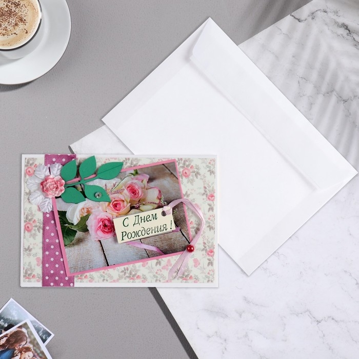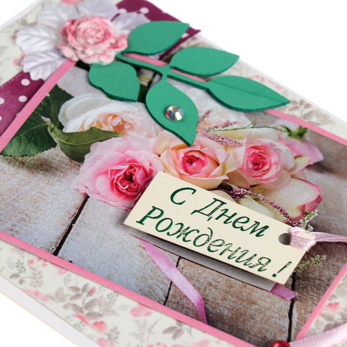 Открытка "С Днём Рождения!" ручная работа, листья, 11,5х17 см