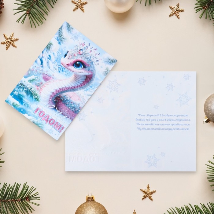 Открытка "С Новым Годом! -2" глиттер, конгрев, символ года, 12,5 х 19,4 см