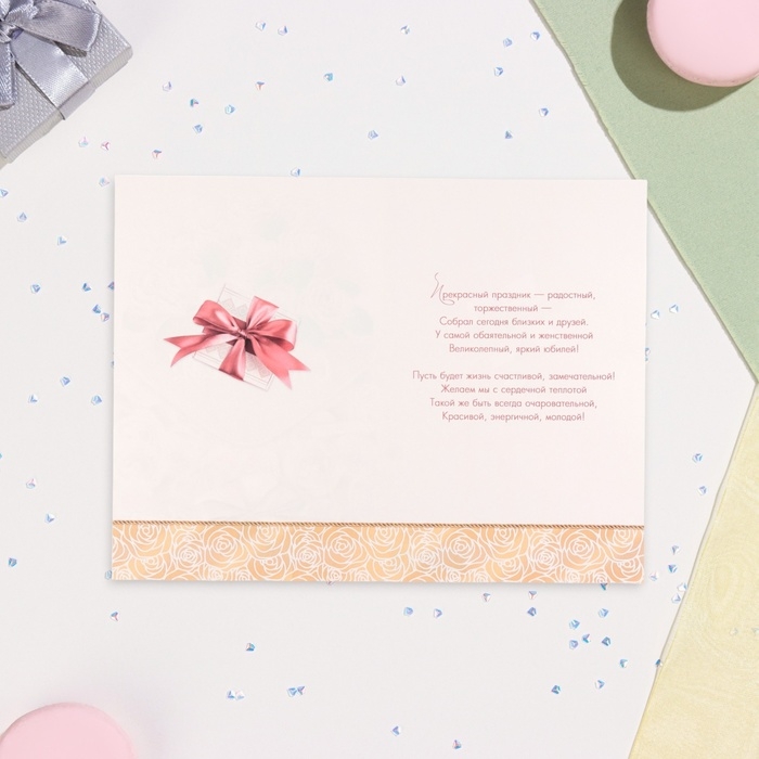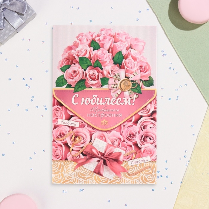 Открытка "С Юбилеем!" глиттер, конгрев, розовые розы, подарок, 19 х 29 см