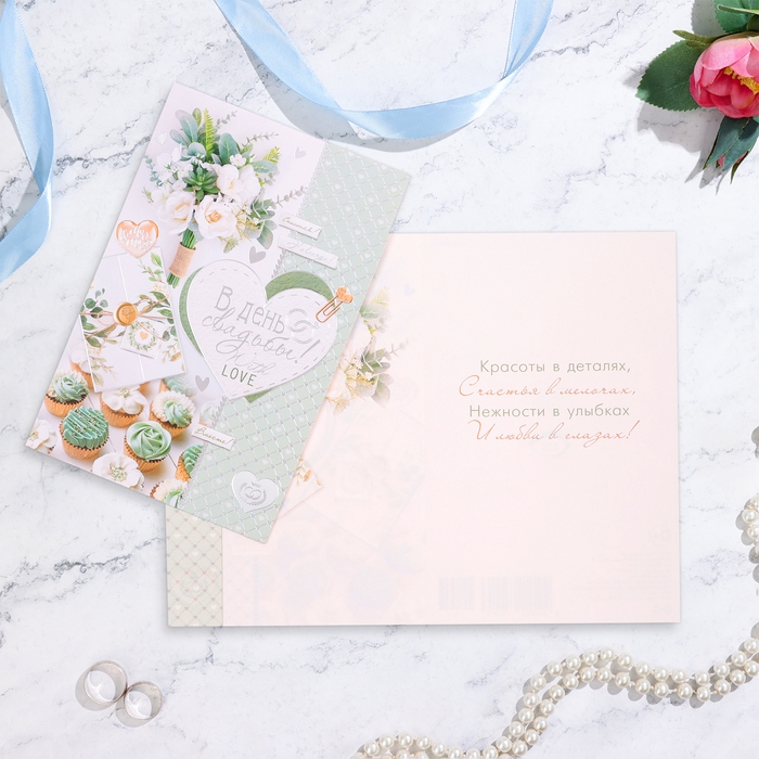 Открытка "В День Свадьбы!" кексы, конгрев, глиттер, А5