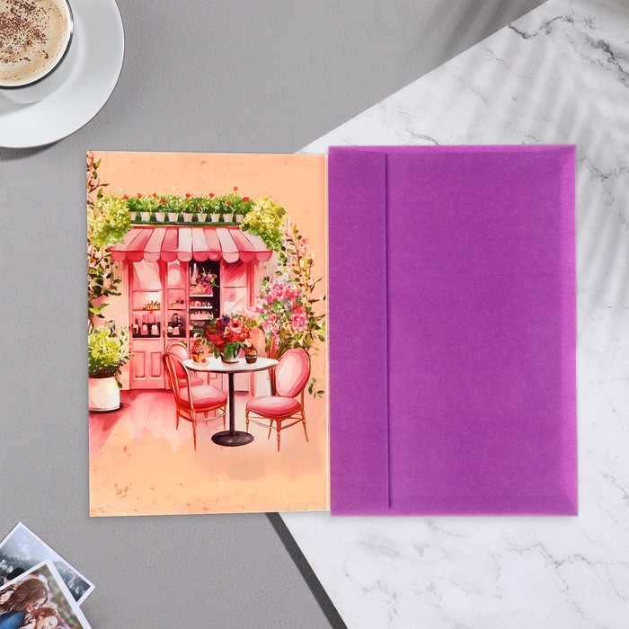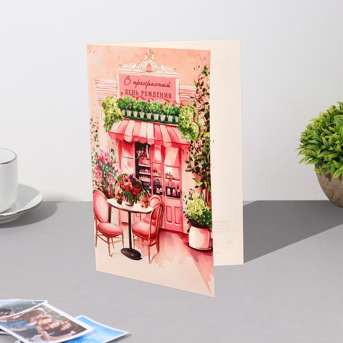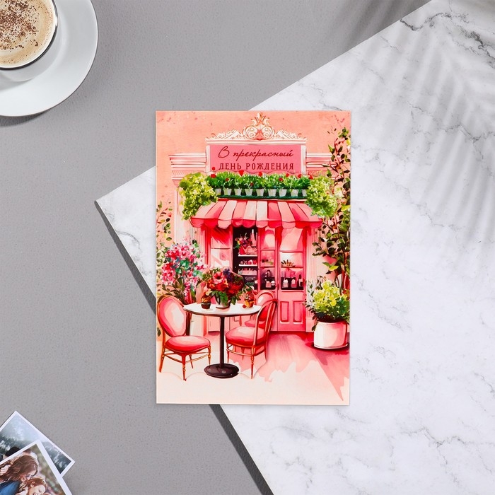 Открытка "В прекрасный День Рождения!" декоративный элемент, кафе