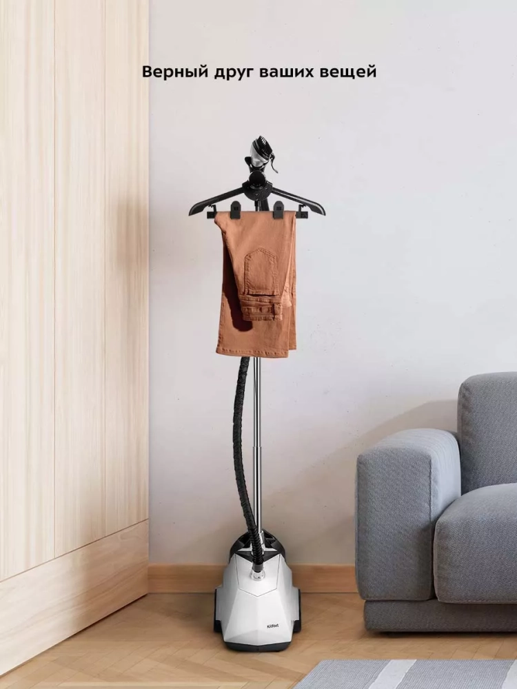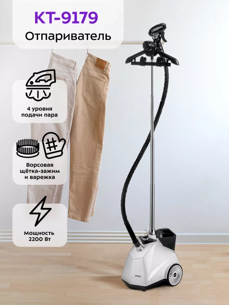 Отпариватель Kitfort КТ-9179 позволяет быстро прогладить любые вещи и изделия из текстиля. В отличие от утюгов, которыми гладят ткани и одежду, расположенные горизонтально, отпаривателем обрабатывают одежду и ткани, расположенные вертикально.