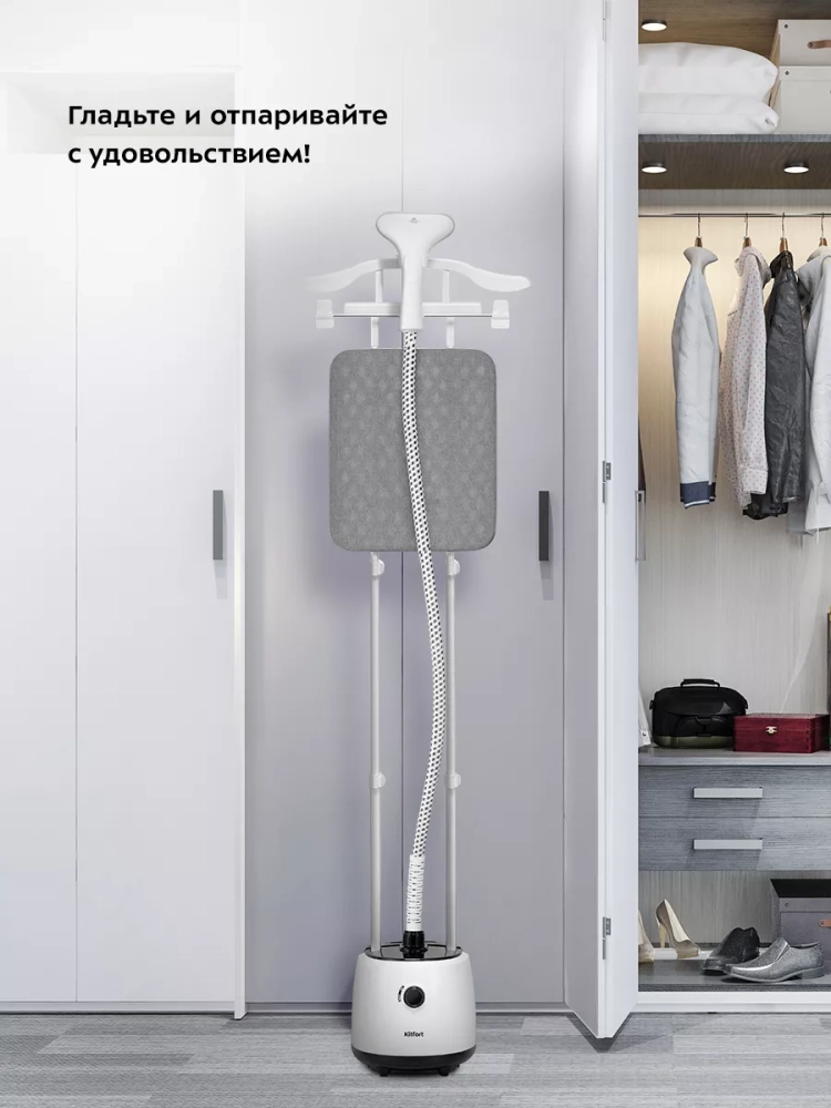 Отпариватель Kitfort КТ-9230 позволяет быстро прогладить любые вещи и изделия из текстиля. В отличие от утюгов, которыми гладят только ткани и одежду, расположенные горизонтально, отпаривателем можно обрабатывать одежду и ткани, расположенные как горизонтально, так и вертикально. При отпаривании одежда может висеть на вешалке отпаривателя или на обычной вешалке, подвешенной на отпариватель, на сушилке для белья или на веревке, или быть разложена на гладильной доске отпаривателя.