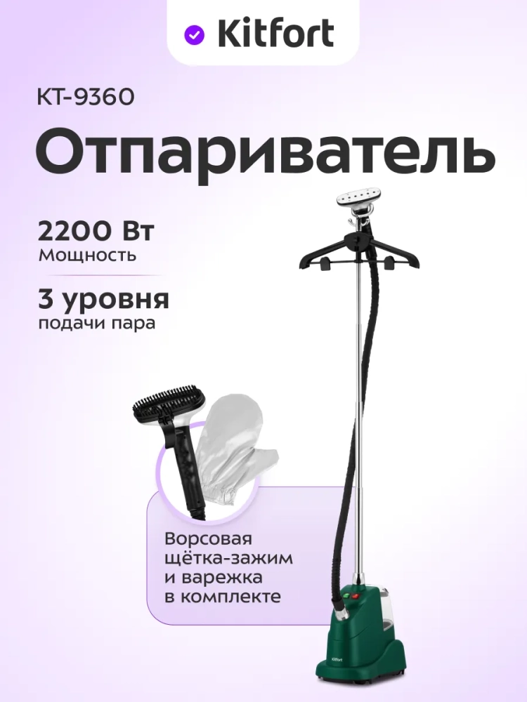 Отпариватель Kitfort КТ-9360 позволяет быстро прогладить вещи и изделия из текстиля. В отличие от утюгов, которыми гладят ткани и одежду, расположенные горизонтально, отпаривателем можно обрабатывать их как в горизонтальном, так и в вертикальном положении. При этом одежда может висеть на вешалке отпаривателя, на обычной вешалке, подвешенной к отпаривателю, на сушилке для белья или на бельевой веревке.