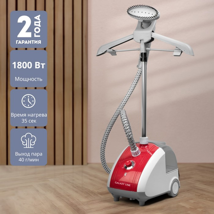 Отпариватель Galaxy GL 6206, напольный, 1800 Вт, 2300 мл, 40 г/мин, бело-красный