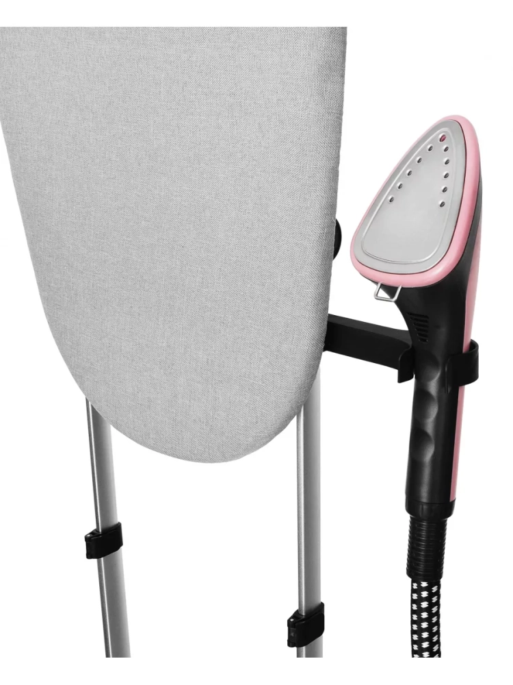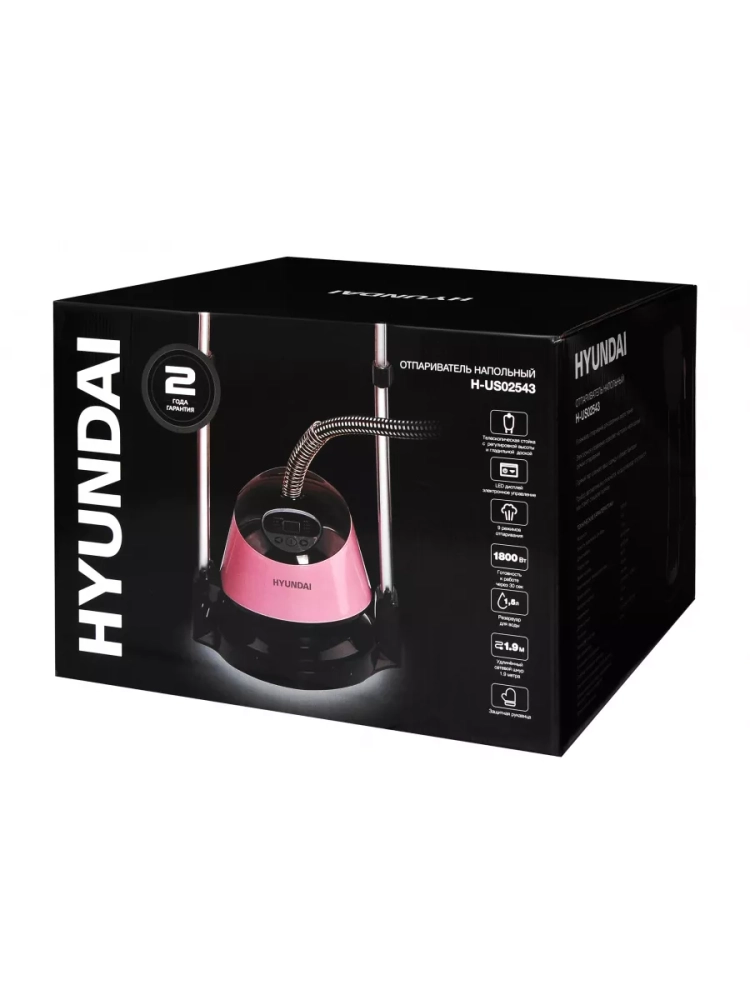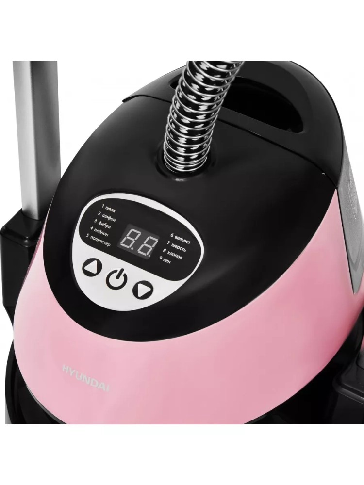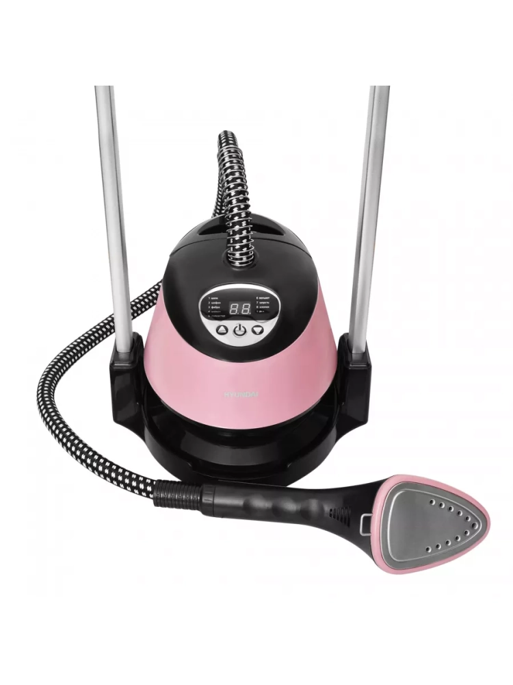 Отпариватель напольный Hyundai H-US02543 розовый/черный, мощность 1800Вт, в комплекте Насадка-щетка,варежка, встроенная вешалка.