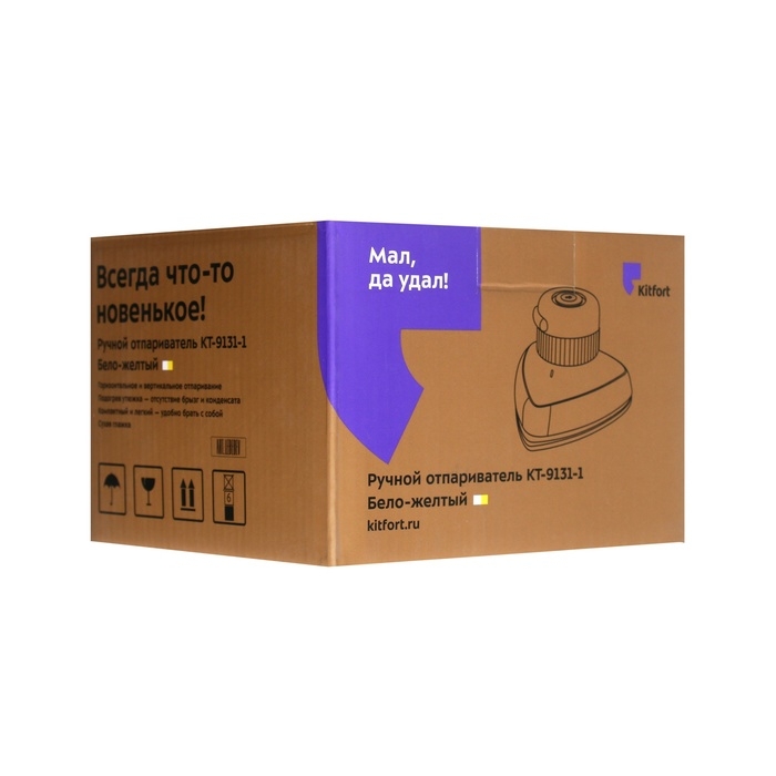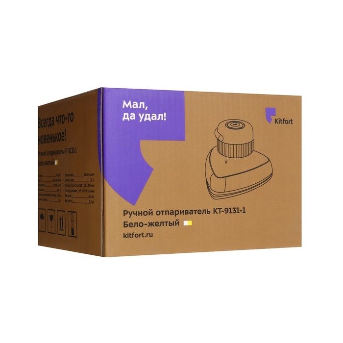 Отпариватель Kitfort КТ-9131-1, ручной, 800 Вт, 50 мл, 12 г/мин, бело-жёлтый