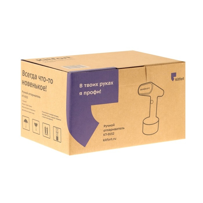 Отпариватель Kitfort KT-9152, ручной, 1500 Вт, 150 мл, 20 г/мин, шнур 2.5 м, белый