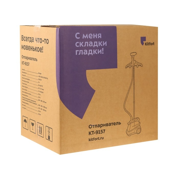 Отпариватель Kitfort КТ-9157, напольный, 2200 Вт, 3000 мл, 45 г/мин, шнур 3м, серо-оранжевый 1020844