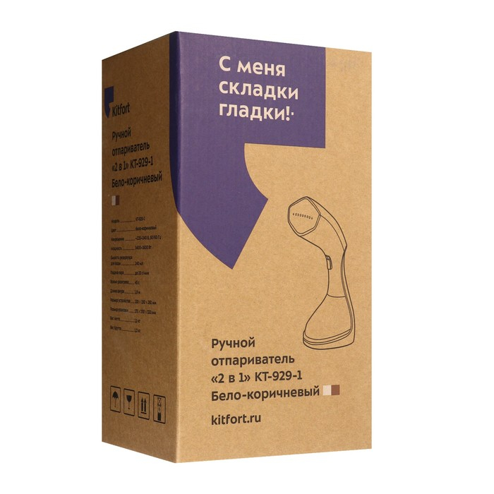 Отпариватель Kitfort КТ-929-1, ручной, 1600 Вт, 240 мл, 20 г/мин, бело-коричневый