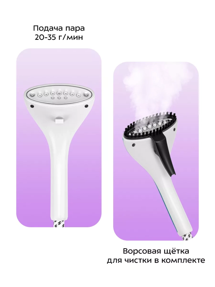 На вешалку отпаривателя можно повесить рубашки и другую одежду, а на вешалку с прищепками — брюки и юбки. Также вешалку с одеждой можно закрепить на отпаривателе, повесив ее на вешалку с прищепками или крючки на вешалке отпаривателя. Таким образом, вам не придется перевешивать одежду с вешалок, на которых она хранится в шкафу. В комплекте к отпаривателю идет ворсовая щетка, которая поможет счистить волосы и шерсть домашних животных с одежды и обивки мягкой мебели, а также защитная варежка, которая может избежать ожогов при отпаривании.