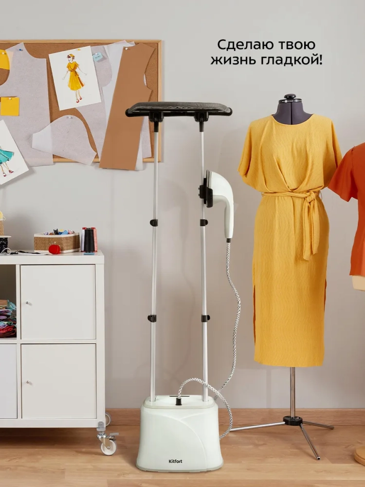 Отпариватель Kitfort КТ-9295 позволяет быстро прогладить любые вещи и изделия из текстиля. В отличие от утюгов, которыми гладят только ткани и одежду, расположенные горизонтально, отпаривателем можно обрабатывать одежду и ткани, расположенные как горизонтально, так и вертикально. При отпаривании одежда может висеть на вешалке отпаривателя или на обычной вешалке, подвешенной на сушилке для белья или на веревке, или быть разложена на гладильной доске отпаривателя.