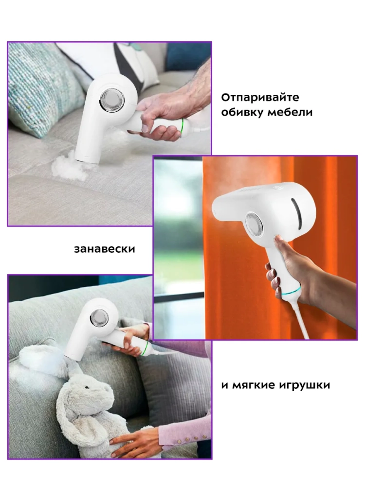 Отпариватель - устройство для разглаживания изделий из текстиля с помощью потока горячего пара. Ручной отпариватель Kitfort КТ-9108 обладает такими достоинствами, как: стильный дизайн, компактность и удобство использования. Благодаря складывающейся ручке он будет занимать еще меньше места в чемодане или на полке. Его удобно брать с собой в дорогу. Ручной отпариватель приведет в порядок вещи быстро и практически в любом месте - без раскладывания гладильной доски. Одежда при этом может висеть на вешалке, на сушилке для белья или на веревке. Ручной отпариватель - более функциональное и универсальное устройство, чем утюг. Под действием пара волокна ткани не растягиваются и не сжимаются, как под воздействием утюга, а приобретают объемность и эластичность. Отпариватель не деформирует ткани и не оставляет заломов или лоснящихся пятен на одежде. Помимо отпаривания одежды, вы можете отпарить занавески и портьеры (для этого их не обязательно снимать), обивку мягкой мебели, матрасы или мягкие игрушки. При этом вы не только разгладите складки и вернете форму вещам, но и освежите и продезинфицируете их, так как горячий пар хорошо убивает пылевых клещей и другие микроорганизмы. Благодаря мощному потоку пара ручной отпариватель позволяет разгладить даже те вещи, которые обычно не гладят - пышные платья со сложной структурой, шубы, дубленки или куртки. Также с его помощью можно готовить к сезону вещи, у которых при хранении появился затхлый запах - отпариватель эту проблему решает без всякой стирки. Горячий пар устраняет неприятные запахи и освежает ткани, поэтому он отлично поможет в ситуации, когда вы один раз надевали вещь и хотите сделать это еще раз, не стирая ее. Если вы находились в помещении, полном сигаретного дыма, и одежда пропахла табаком, то с помощью отпаривателя можно быстро убрать запах и освежить ее. Внимание! Если при первом включении не идет пар, см. главу - Устранение неполадок.