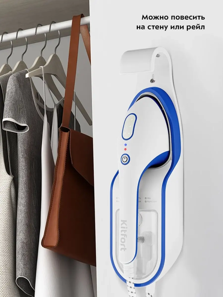 Ручной отпариватель Kitfort КТ-9130 предназначен для разглаживания изделий из текстиля с помощью потока горячего пара. Устройство обладает такими достоинствами, как мощный поток пара, минималистичный дизайн, удобство при использовании и хранении. Его можно брать с собой в дорогу, а дома — повесить на стене или штанге для одежды. В базе предусмотрено отверстие для настенного крепления, а также крепление на штангу для одежды. А противоскользящие ножки фиксируют отпариватель на горизонтальной поверхности. База также оснащена термостойкими вставками, чтобы вы могли положить на базу нагретый утюжок после отпаривания. На задней стороне базы размещен отсек для хранения шнура.