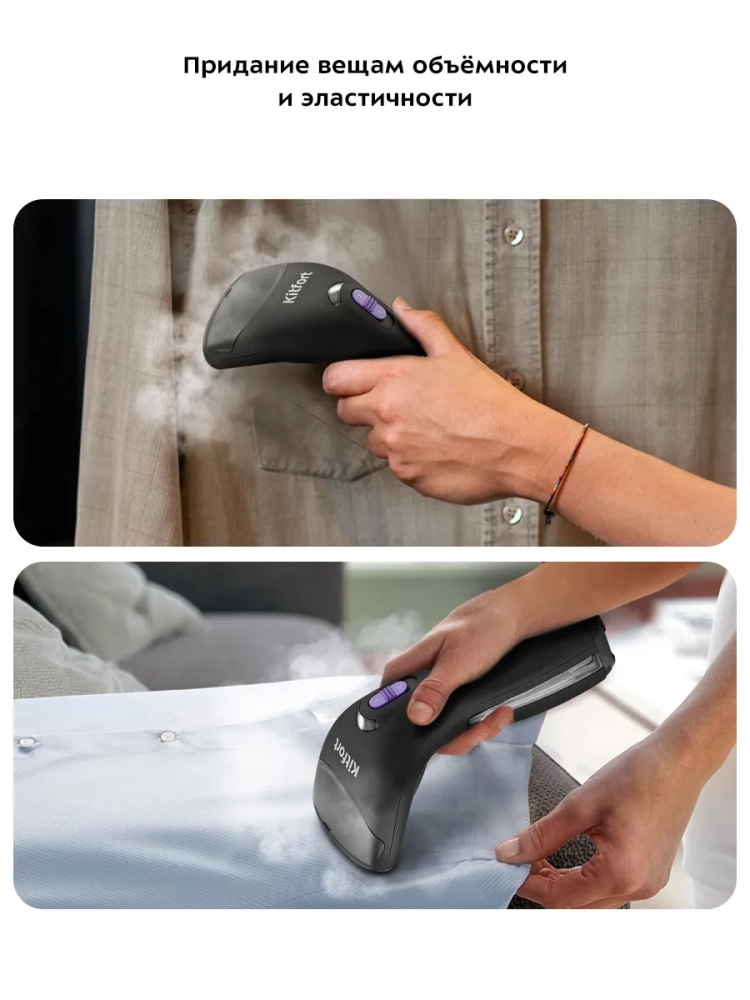 Ручной отпариватель Kitfort КТ-9199 предназначен для разглаживания изделий из текстиля с помощью потока горячего пара. Устройство обладает такими достоинствами, как мощный поток пара, минималистичный дизайн, удобство при использовании и хранении. Его можно брать с собой в дорогу — устройство не займет много места. Ручной отпариватель приведет в порядок вещи быстро и практически в любом месте — без раскладывания гладильной доски. Одежда при этом может висеть на вешалке, сушилке для белья или веревке.