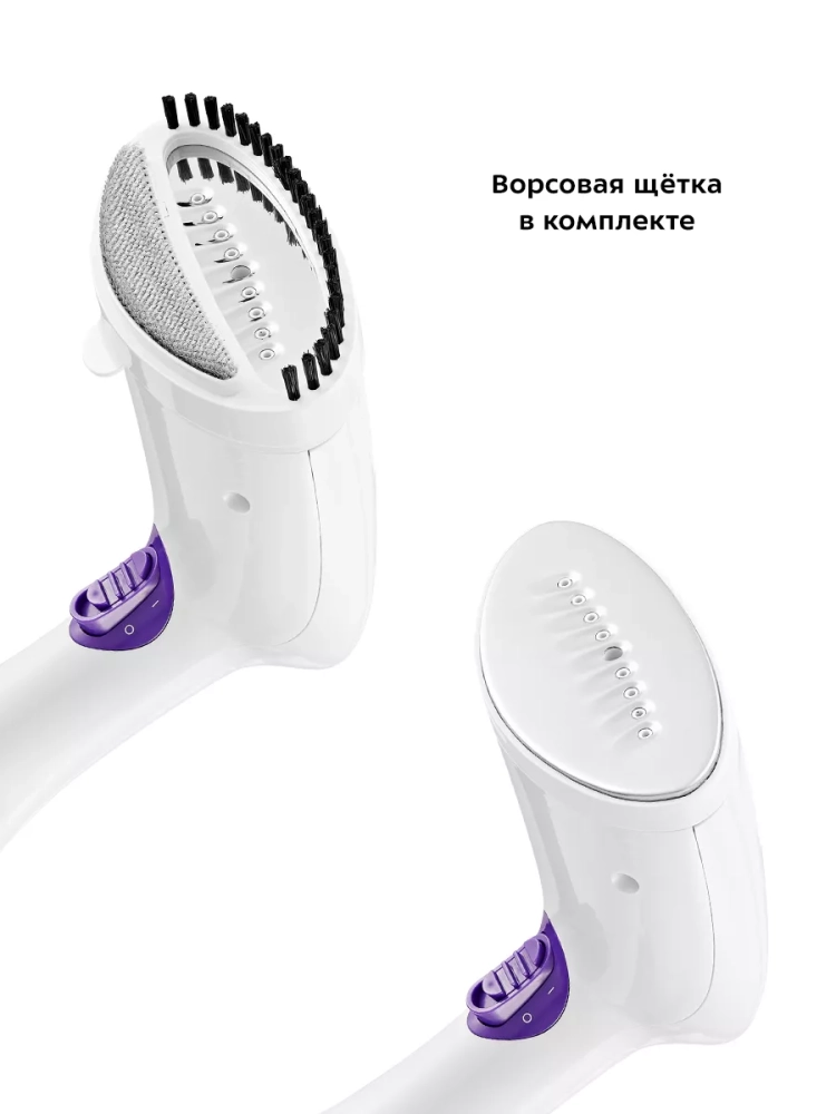 В комплекте к отпаривателю поставляется мерный стакан для удобного добавления воды в резервуар и ворсовая насадка, которая позволяет почистить вещи от пыли, волос или шерсти при отпаривании.