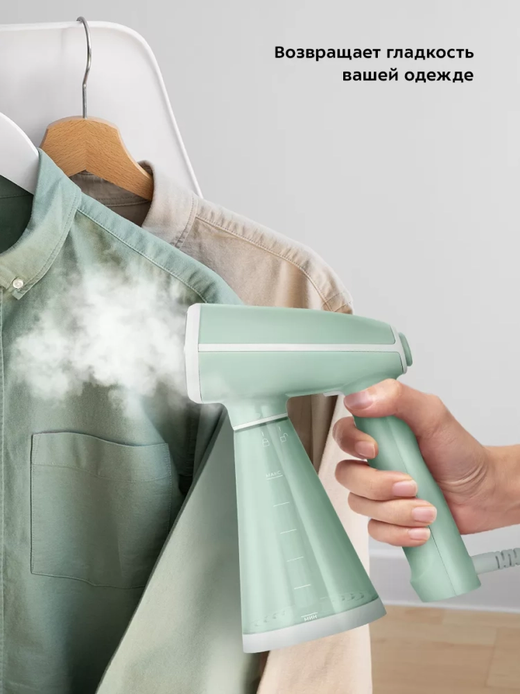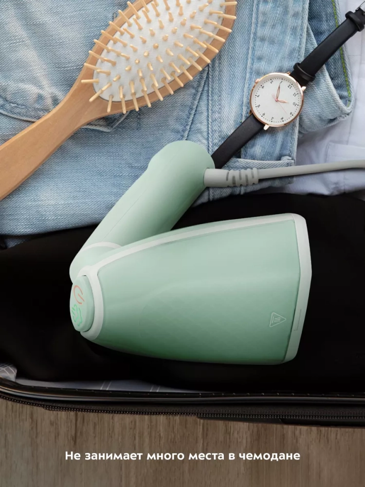 У отпаривателя складная ручка и съемный резервуар для воды, что делает хранение прибора более удобным.