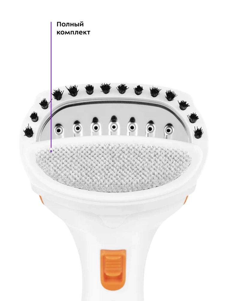 В отпаривателе КТ-9268 управление подачей пара осуществляется с помощью одной кнопки на ручке прибора. Шнур отпаривателя оснащен защитой от перегиба, что увеличивает срок службы прибора. В комплекте предусмотрена ворсовая насадка, которая поможет очистить вещи от пыли, ворса, волос и шерсти домашних животных. Для удобства заполнения резервуара для воды в комплекте есть мерный стакан.