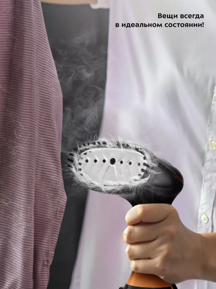 Отпариватель не деформирует ткани и не оставляет заломов или лоснящихся пятен на одежде. Помимо отпаривания одежды вы можете отпарить занавески и портьеры (для этого их не обязательно снимать), обивку мягкой мебели, матрасы или мягкие игрушки. При этом вы не только разгладите складки и вернете форму вещам, но освежите и продезинфицируете их, так как горячий пар хорошо убивает пылевых клещей и другие микроорганизмы.